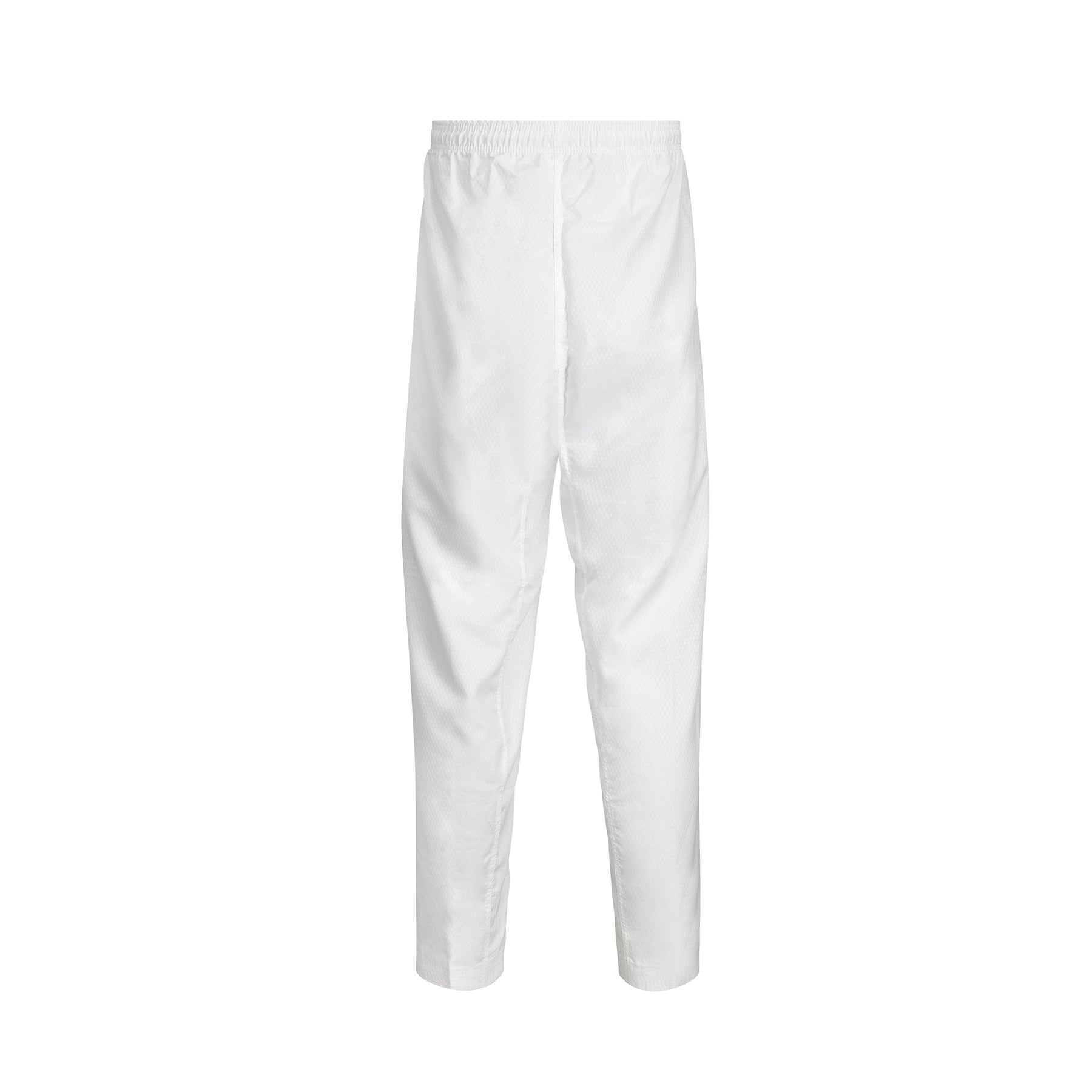 Available for a limited Time Only. Itf Taekwondo Trousers, in White made from polyester, Ultra Light Performance Material, With ITF Lettring embroidered On Both Sides of the trousers. Comes with elasticated Draw String Waist.