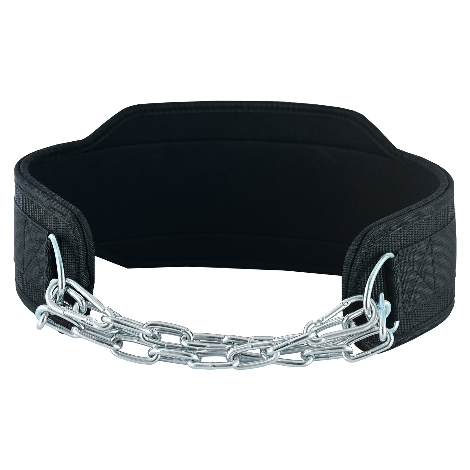 Pro Dipping Belt with its tapered construction is fit with a thick layer of EVA Foam padding, resilient polyester fabric and enhanced grip to cater to your fitness needs. Added with two layers of Polypropylene, this product can take up maximum loads of up to 600lbs. A 36 inch extra-long steel chain provides the user with the opportunity to achieve huge gains by more weight plates to increase intensity of their workout. The perfect workout assistance to maintain appropriate lower back posture during exercises like weighted dips, weighted chin-ups & pull-ups, hip belt squats and calf raises. Tapered build allows for hips to move freely during deep end ranges. A thick layer of EVA sheet, lined with anti-slip polyester fabric provides a firmer grip. The front of the belt is covered with one layer of wide weave polypropylene over which sits the overlay belt made of fine weave polypropylene. This dual-layer ensures maximum durability and weight-bearing capacity. The belt is 32 inches long, with a 6 inches wide lumber area and tapered 4 inches wide side panels. Heavy-duty, powder-coated metal D-rings and carabiner, with extra-long 36 inches heavy-gauge steel chain lets you carry extra plates during workout.