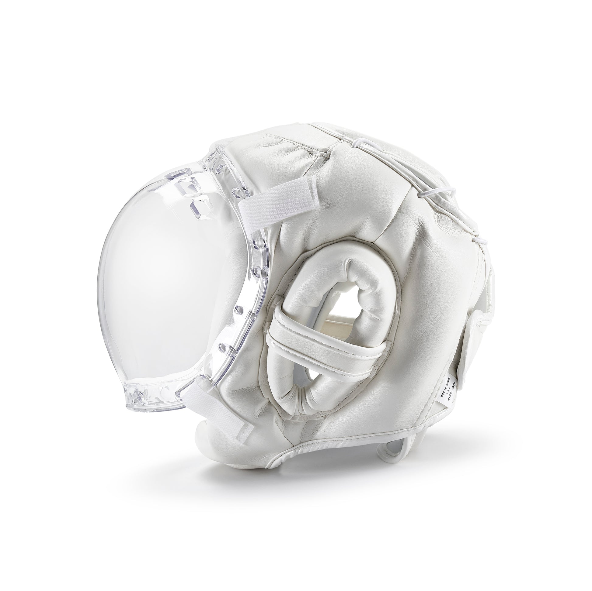 For total facial protection, use this new Kudo Headguard with a full face cover A Unique Product On the market, made of tough Acrylic. Has ventilation, and the Mask comes at least 1.5 inches away from the face, this aids in a breathing and also helps prevent the face mask steaming up. Ears on the headguard are well padded, with an adjustable Velcro strap at the back of the headguard. Made of Vinyl: Face Mask is not removable.