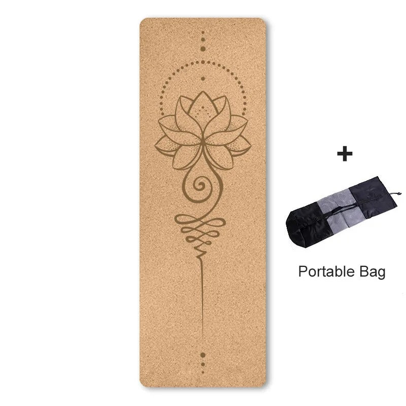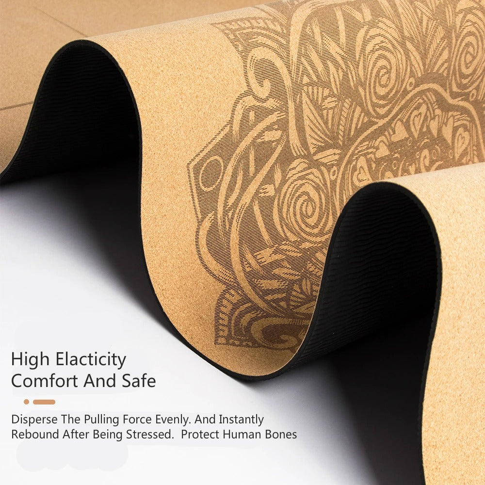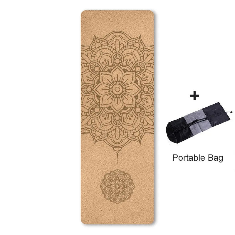Natural Cork TPE Printed Yoga Mat Non-slip Esterilla Yoga Sweat-absorbing Home Fitness Pad Gymnastics Pilates Mats With Bag